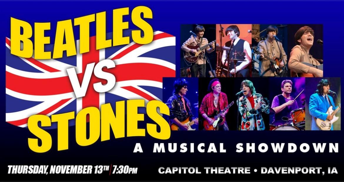 With the Orange Country Register calling the production “electrifying” and the Los Angeles Times labeling it “the most unique tribute show in decades,” the touring sensation Beatles vs. Stones: A Musical Showdown makes a stop at Davenport's Capitol Theatre on November 13, filling the Davenport venue with some of the most electrifying and beloved songs made famous by two of history's most iconic bands.