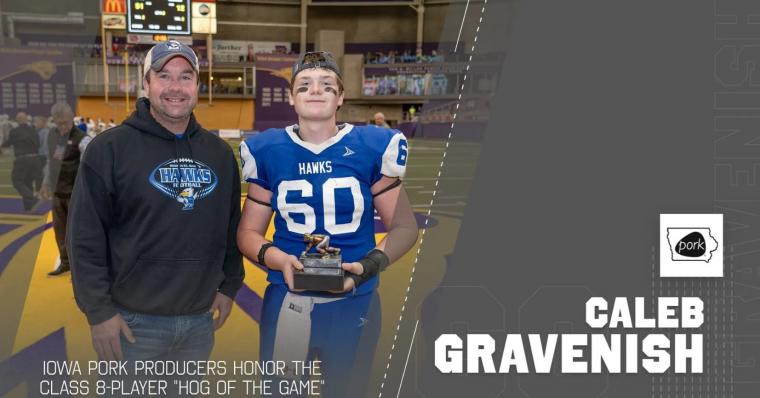 "Iowa pig farmers understand the importance of hard work and teamwork in achieving success, and those same values apply to high-school football," said Matt Gent, a pig farmer from Wellman who serves as president of the Iowa Pork Producers Association. "Offensive linemen are the unsung heroes of the game. They protect the quarterback, open up running lanes, and lead with communication and strategy. We are proud to honor these young athletes for their dedication and perseverance."