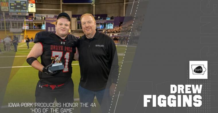 CLIVE, IOWA (November 25, 2024) — The Iowa Pork Producers Association (IPPA) honored seven stand-out high school football players during the state championships for their invaluable yet often overlooked contributions. The prestigious Hog of the Game Award recognizes the top offensive lineman in each of the seven state championship games.