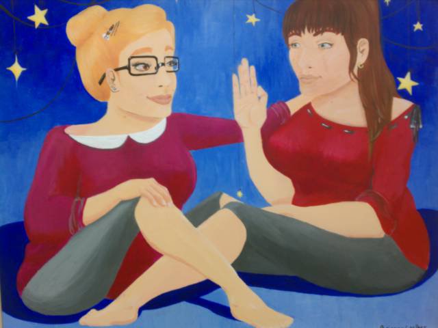 For her College Invitational submission, titled I'll Miss You, Walker was able to indulge in this new passion while celebrating a longtime friendship. "It's a large canvas painting of me and my best friend," says Walker of I'll Miss You. "We're splitting ways - she has to move to Florida - and I was very upset, so I put together this painting of us to commemorate it." Created, as she says, "mostly from memory and a couple of pictures," the work was a significant leap for Walker. "I've never actually done something so big," she says. "But I thought if it was going in the Figge, I should really push myself."