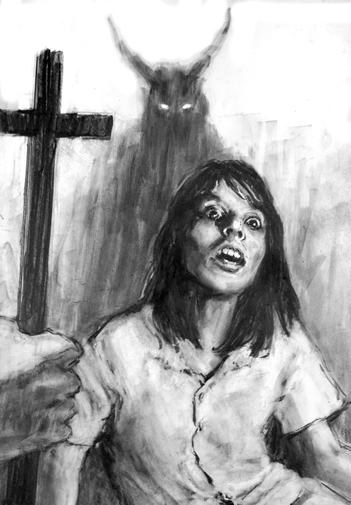 Illustration above by Bruce Walters depticts the “Earling Exorcism” was a 28-day battle with a demon that inspired both the book and film The Exorcist. Emma Schmidt (a.k.a. Anna Ecklund), illustrated here by Bruce Walters, was a woman living in Iowa whose alleged demonic possession and exorcism occurred over several decades, culminating in an extensive exorcism that lasted from August 18 to December 23, 1928, in Earling, Iowa. Ecklund's case is considered by theologians and scholars of the paranormal to be one of the most abundantly documented cases of demonic possession in the 20th century, its coverage including a profile in a 1936 issue of Time magazine.