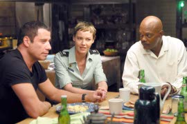 Much has been made about how ridiculously convoluted the wrap-up to John McTiernan's military melodrama Basic is, and I won't argue that fact, but it made about as much sense as everything else in the film, so the finale didn't really bother me. In this latest rip-off of Rashomon, Army investigators John Travolta and Connie Nielsen are enlisted to solve a mystery: What happened to a Special Forces team during a Panamanian mission, and how did most of the team wind up dead? What follows is a series of sequences in which Travolta and Nielsen try to uncover the truth by interviewing those left alive, all of whom have conflicting tales to tell, and those of us who love a good, twisty, who's-screwing-whom flick will soon realize that even the filmmakers don't seem to know, or care; the movie is like an Agatha Christie novel with every other page ripped out. Nothing in Basic holds together, but the film is reasonably diverting anyway - McTiernan keeps the film's 90 minutes moving along at a brisk tempo - and it does feature one portrayal so ludicrously over-the-top that it's practically unmissable. As a wounded gay soldier, the ever-nutty Giovanni Ribisi gives a theatrical, hambone performance that must be seen to be (dis)believed, and speaks like the love child of Gary Oldman's Mason Verger in Hannibal and Mike Myers' Dr. Evil; you keep waiting for him to say, "I'll tell you what you want to know, Agent Starling ... for one million dollars!"
