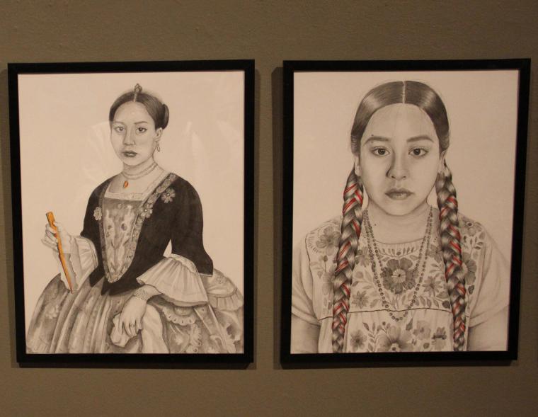 Castaneda's series of five self-portraits, each representing a different stage of Mexican history, won the drawing award at the exhibition