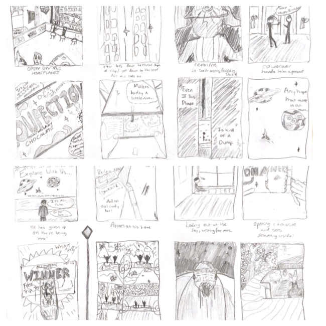 Each student’s work is accompanied by a statement sharing their perspectives and intentions for the artwork. The work in this exhibition was created as a culmination of their classes and individual development as artists and graphic designers.