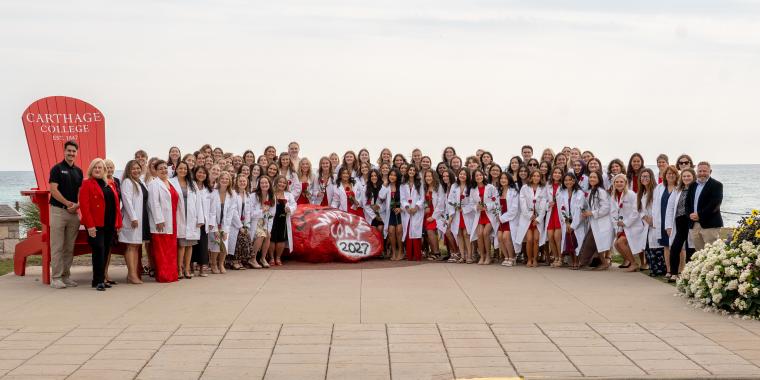 The White Coat Ceremony represents the end of foundational classes for the nursing students. For students in their junior year, this milestone signifies a transition to specialty-focused clinical coursework for the remaining two years at Carthage before graduating with a Bachelor of Science in Nursing and becoming eligible to take the exam to become a professional registered nurse.