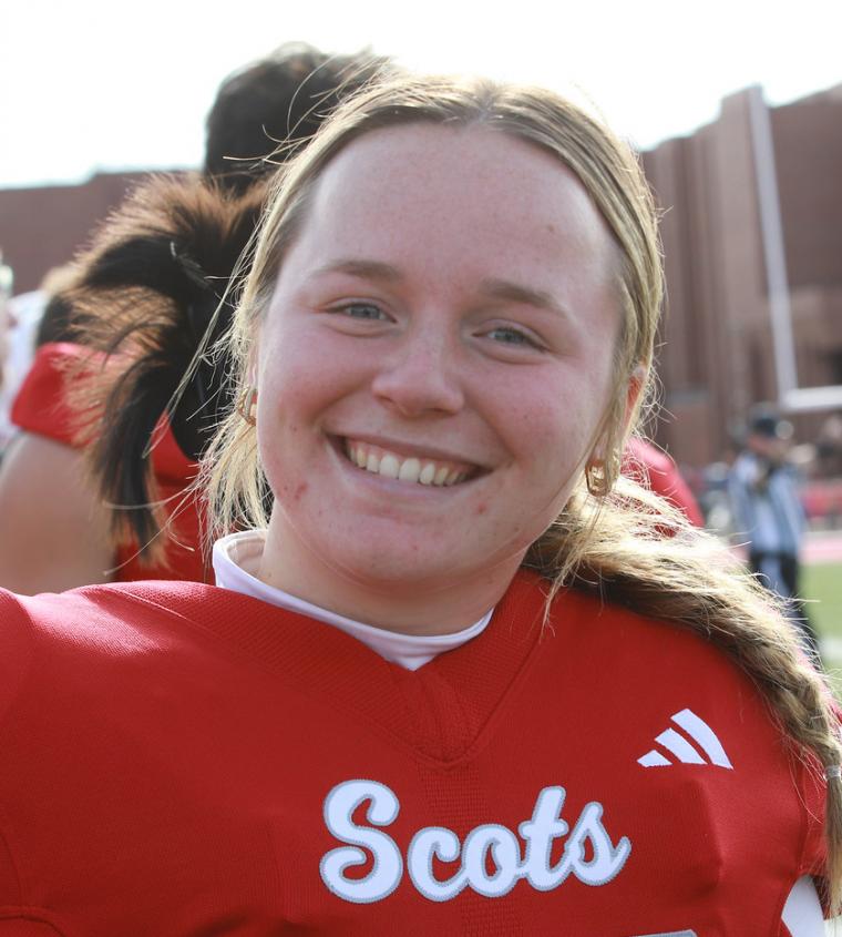 Hansen is not Monmouth's regular kicker, but she's made headlines for her performance, nonetheless. Last year, she became the first female to score a point for the Scots. This season, she earned a spot on the national D3 Team of the Week by booting two field goals and three extra points in Monmouth's first win.