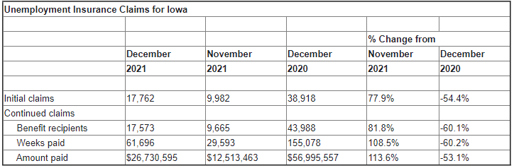 “Growth and recovery continue throughout Iowa, with positive trends across many sectors of our state’s economy,” said Beth Townsend, Director of Iowa Workforce Development. “More than 45,000 Iowans joined the employed last year as Iowa reignited its focus on job growth and getting citizens back to work. We intend to build on this momentum this year by using our Reemployment Case Management and other improvements to help more and more Iowans find new careers in 2022.”