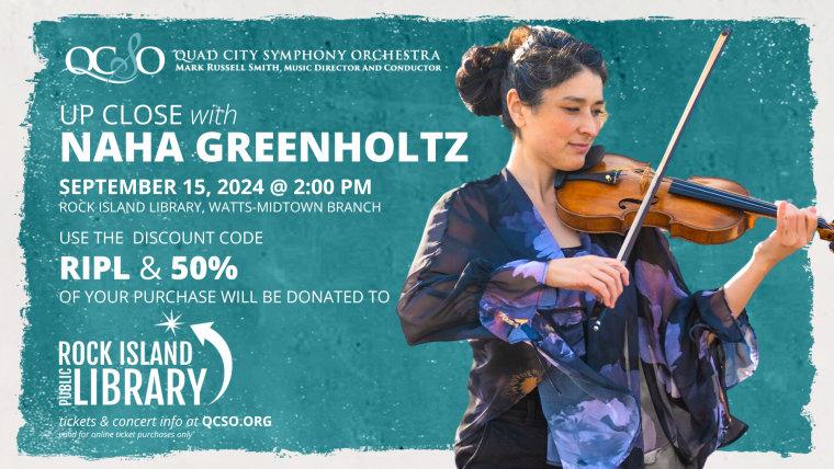 Use the discount code RIPL during the online checkout process, and 50% of your ticket purchase will be donated to Rock Island Public Library Foundation.