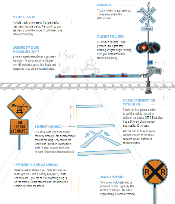 With over 140,000 miles of track across the US and more than 200,000 places where roadways cross railroad tracks, it’s likely that people will encounter tracks and trains at some point while participating in fall events.