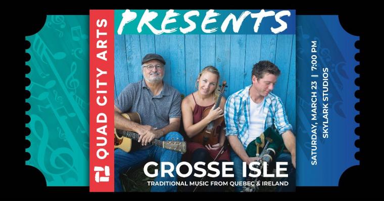 ROCK ISLAND, ILLINOIS (March 15, 2024) — Tickets are on sale now for an exclusive evening performance by traditional Irish and Quebecois music trio Grosse Isle, part of Quad City Arts’ Visiting Artist Series residency program. Patrons will experience a full-length performance, followed by an intimate conversation revealing the artist's background and creative ventures.