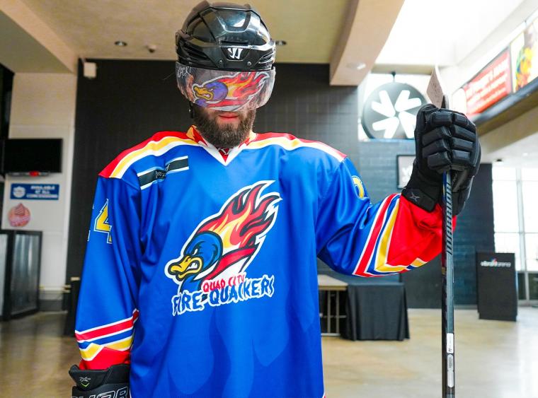 This weekend only, the Quad City Storm rebrands to the Quad City Fire Quackers. The rebrand pays homage to the previous two teams to play hockey in the QCA: The Quad City Mallards and Quad City Flames. The jerseys are bright blue, red, and yellow and feature a flaming duck as the logo. The team will wear the jerseys in Friday and Saturday’s games before returning to Storm sweaters on Sunday.