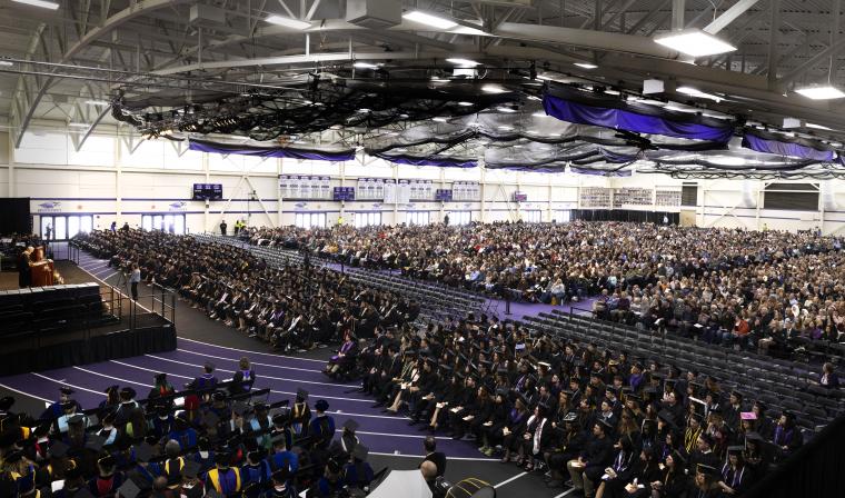 Students crossed the stage to receive their degrees at the ceremony, held at Kachel Fieldhouse in the Williams Center.