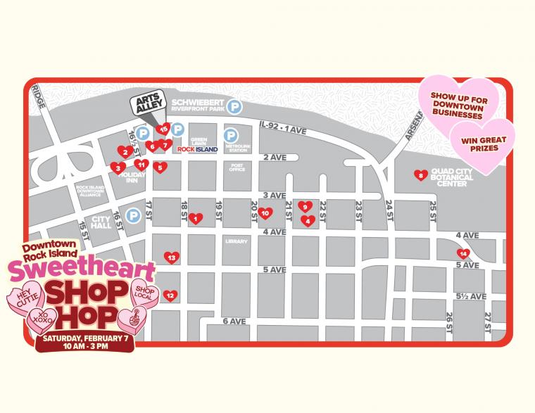 “The local businesses in our district create Downtown Rock Island’s melting pot of experiences, and the Sweetheart Shop Hop is a way to highlight some of these unique amenities and invite the community to show up for these businesses,” said Jack Cullen, Executive Director of the Downtown Alliance.