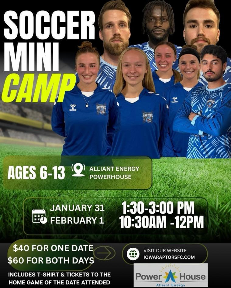 SOLON, IOWA (January 12, 2026) — Hey kids (and parents!), want to take your soccer skills to the next level? The Raptors' winter Kids' Camp is now open for registration!