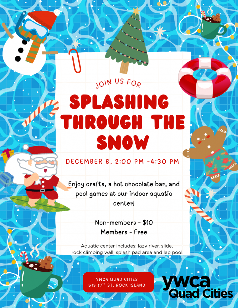 ROCK ISLAND, ILLINOIS (November 19, 2025) — The YWCA Quad Cities invites families and community members to warm up this winter at Splashing Through the Snow, a festive indoor event held at the YWCA’s Aquatic Center. This family-friendly celebration brings together holiday fun, creative activities, and aquatic adventures, all in a cozy, snow-free environment.