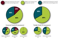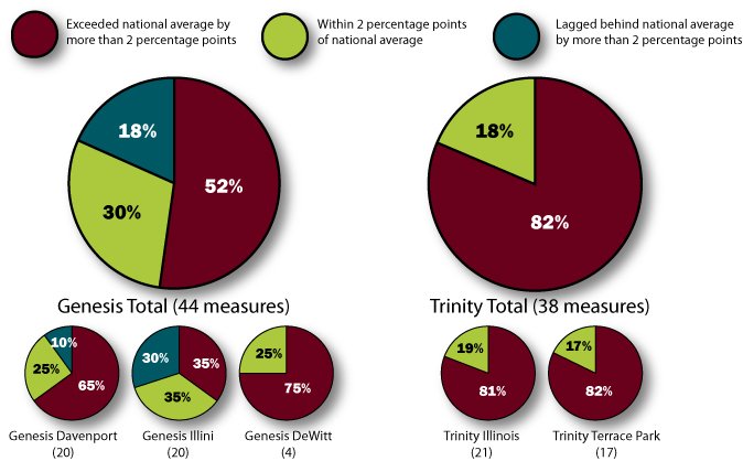 In 13 percent of measures, Genesis was more than 2 percentage points better than expected outcomes, while Trinity had no measure in which it exceeded outcomes by 2 points.