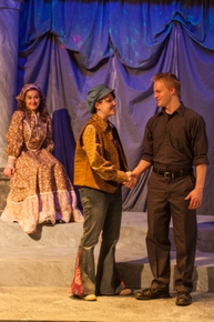 Each cast member offers a commendable performance, but I enjoyed the characterizations of four actors in particular: Debo Balogun, Luke Currie, Jessica Holzknecht, and perhaps especially Josh Pride. I've been a fan of Pride's presence on stage ever since his highly hilarious turn as the titular character in Augustana's 2013 Figaro; he's one of the rare college actors who has me lamenting his graduation for fear that I won't get to see him perform again. Here, he displays a beautiful growth in Oliver as the royal heir matures from arrogant jerk to a wholly-changed, regretful, loving man. (Unfortunately, the character's realizations take place off-stage, denying us the opportunity to see Pride depict Oliver's blossoming perspective on life.)