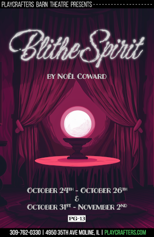 Blithe Spirit runs at Moline's Barn Theatre October 24 through November 2, with performances Fridays and Saturdays at 7:30 p.m. and Sundays at 3 p.m. Admission is $16-18, and more information and tickets are available by calling (309)762-0330 and visiting Playcrafters.com.