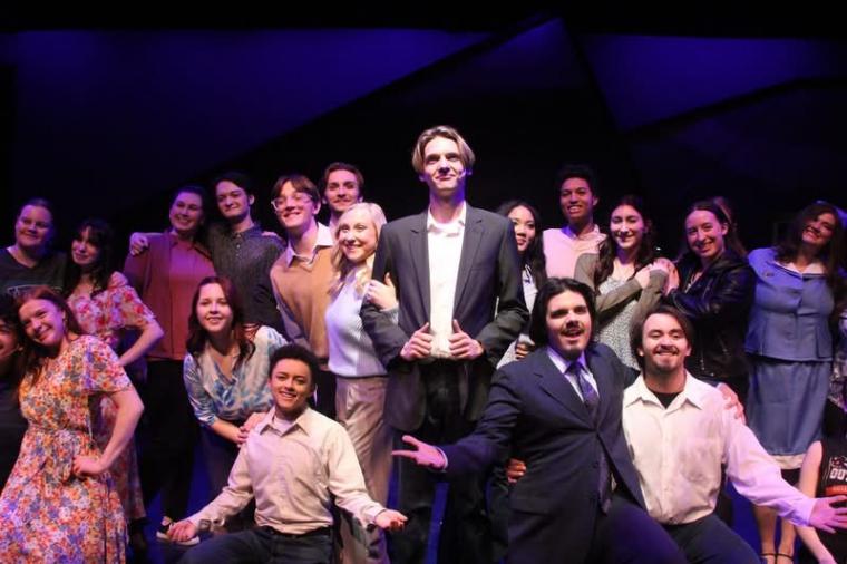 Portraying Company's Bobby is Augustana senior Kaden Micklos, who last spring played Barry in the college's The Prom and has appeared in Black Box Theatre productions of Cooper's Ordinary Days and Songs for a New World. Joanne and Amy, two of the more significant women in Bobby's life, are respectively enacted by Sylvia Hughes and Jensen Stoneking. (Brennan Hampton, Stpehanie Skrabacz, and V Bechtel respectively serve as understudies for the Bobby, Joanne, and Amy roles, with Friday, March 13 being understudy night.) Nearly two dozen student talents, meanwhile, compose the musical's ensemble: Adele Bartlein; Santino (Tino) Bedolla; Danny Bilanicz; Ava Coussens; Maya Cronfel; Avery Dennis; Georgi Fiegley; Alyson Garcia; Angela Georgakis; Lexi Horn; Madeline Hutchinson; Chloe Knobloch; Abby Malina; Phoenix Martin; Francesca Mastrangeli; Lex Mikulski; Joshua Nelson; Austin O'Connor; Aaron Randolph IV; Dev Reed; DJ Roberts; Maya Smith; and Callum Tait.