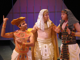 Driving home from the Circa '21 Dinner Playhouse on Friday night, after seeing the opening performance of the musical Joseph & the Technicolor Dreamcoat, I asked my husband, "Can you honestly think of anyone who wouldn't like this show?" We couldn't. And I still can't. With its appealing confluence of technical effects, engaging storytelling, musical styles, memorable characters, and lessons in forgiveness, humility, and hope, even those grudging types who would rather be dressed in bologna and tossed into a shark tank than see a musical can find something in Joseph to laugh at, mull over, be inspired by, or appreciate on a sensory level.