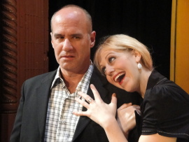 Carrie SaLoutos, a knockout with a radiant smile, comes through with divinely dynamic menopausal meltdowns, while Kathi Osborne exudes a fantastically earthy, seen-and-done-it-all presence graced with emotional texture and dry-comic wit. Mid-Life!'s only questionable bit of casting, in truth, lies with Jessica Swersey - not because this marvelous singer and game comedienne isn't talented, but because even with (too-)heavy eye makeup, her look and physicality clearly reveal that she's a good decade-plus too young for her roles. (Far more so than old age, middle age can't be easily faked.) She'd be perfect for the production if actuarial tables showed our median life expectancy to be 45.