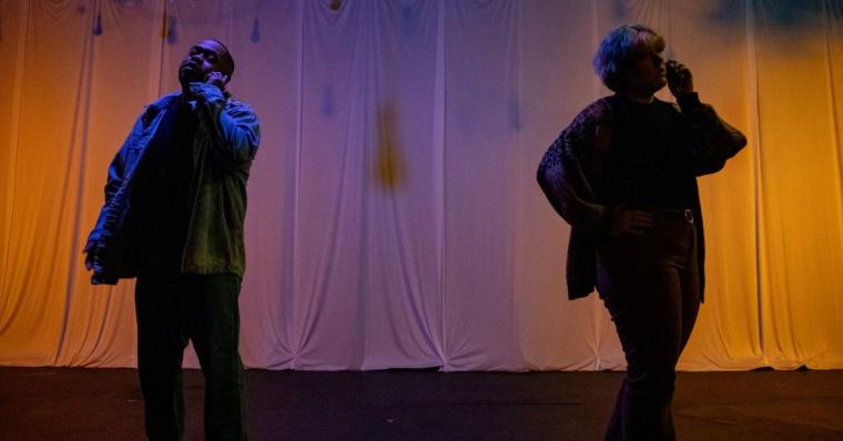 Richardson withholds even the comfort of full character names, offering only initials. Yet in this case, names feel beside the point. Identity is fluid here, shaped by circumstance and connection rather than labels. It feels unfair to separate Keenen Wilson, Shyan DeVoss, Evan Gagliardo, and Sera Calhoun, because the production depends so heavily on their interplay. Each actor spends the evening paired off in various combinations, navigating scenes of love, happenstance, miscommunication, and alcohol-fueled decisions. Watching them connect, sometimes tenderly, sometimes awkwardly, and sometimes painfully, offers a layered glimpse into the fragile architecture of young adulthood.